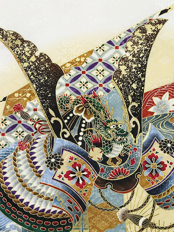 男児産着 お宮参り 2064 単衣 白地 兜 熨斗