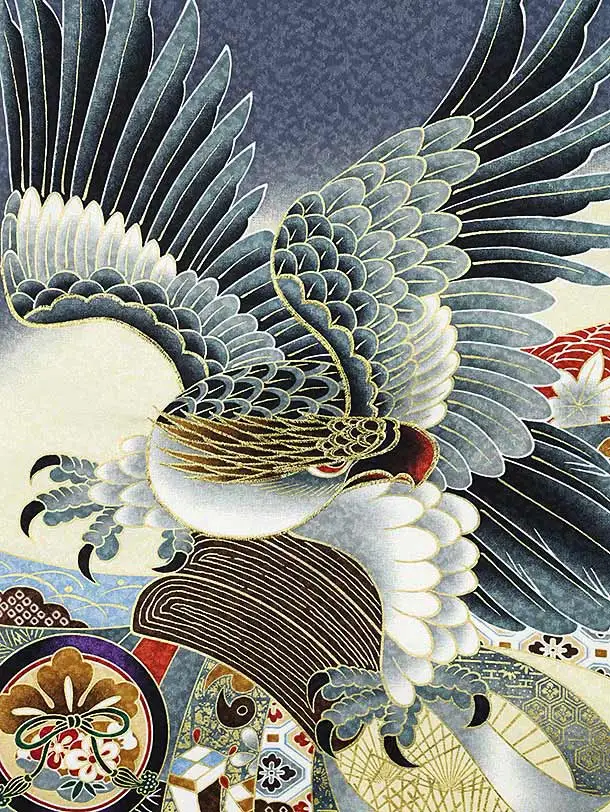 男児産着 お宮参り 2067 単衣 グレー地 鷹に熨斗