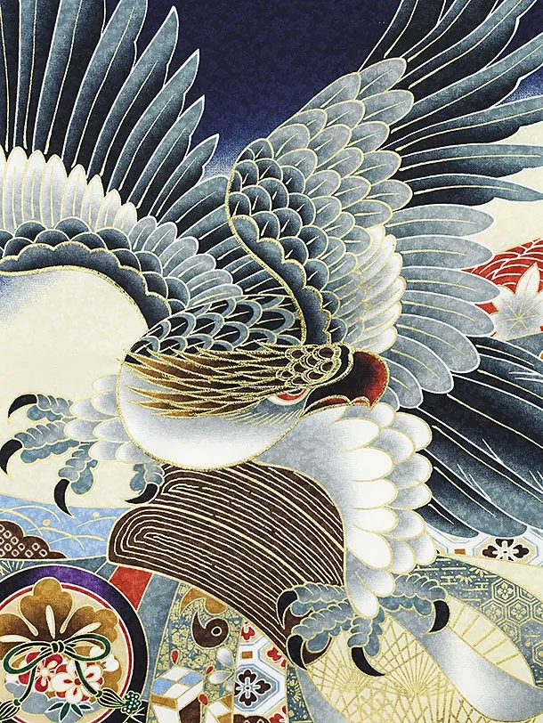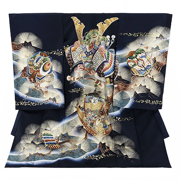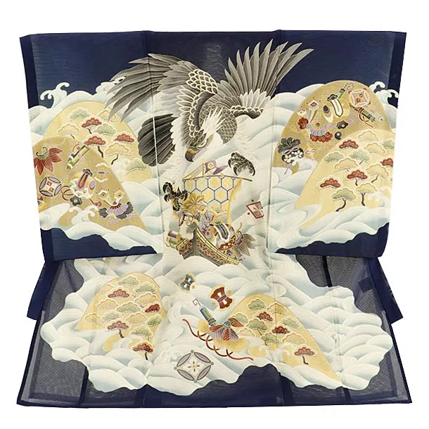 男児産着 お宮参り 2068 単衣 紺地 鷹に熨斗