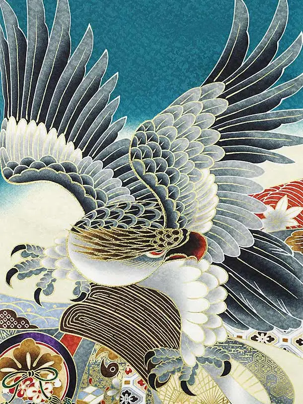 男児産着 お宮参り 2070 単衣 エメラルドグリーン地 鷹に熨斗