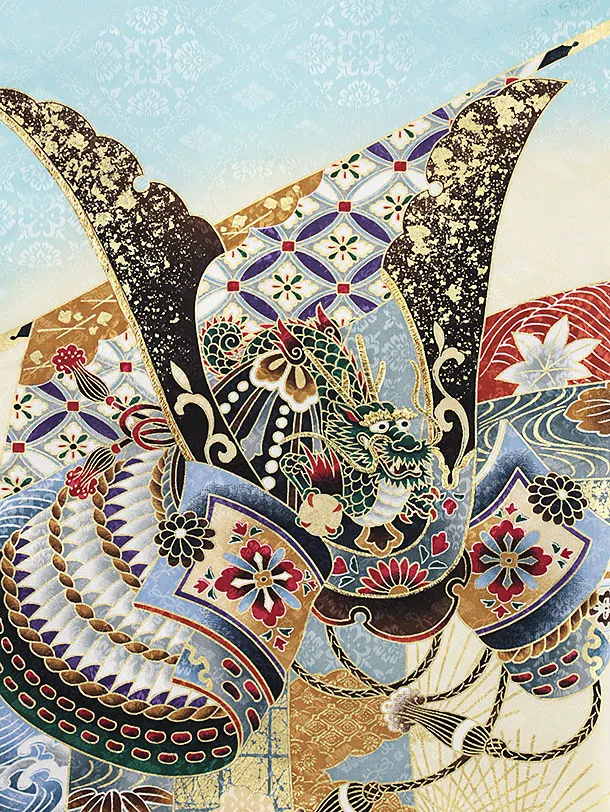 夏用 男児産着 お宮参り2074 単衣 水色地 兜に熨斗