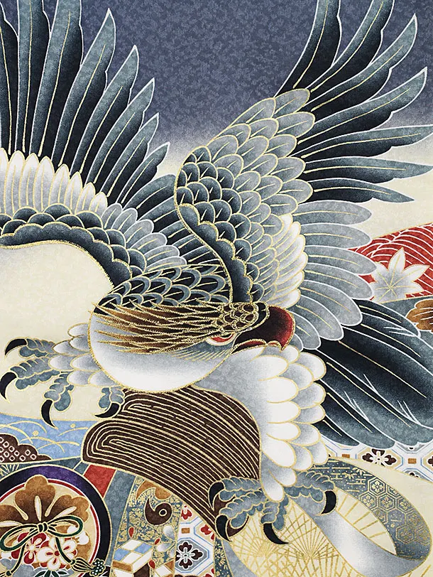 夏用 男児産着 お宮参り2078 単衣 グレー地 鷹に熨斗