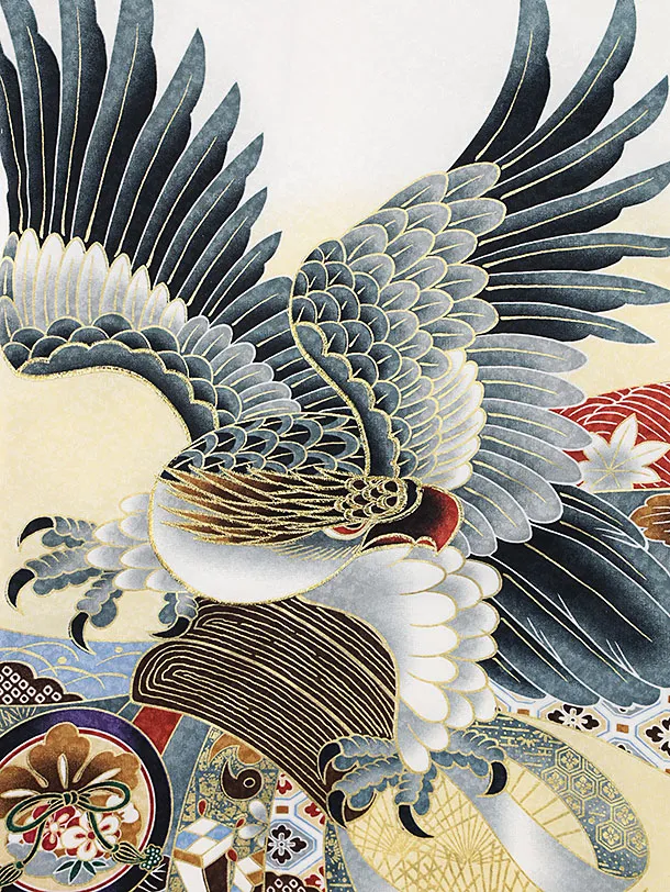 夏用 男児産着 お宮参り2080 単衣 白地 鷹に熨斗