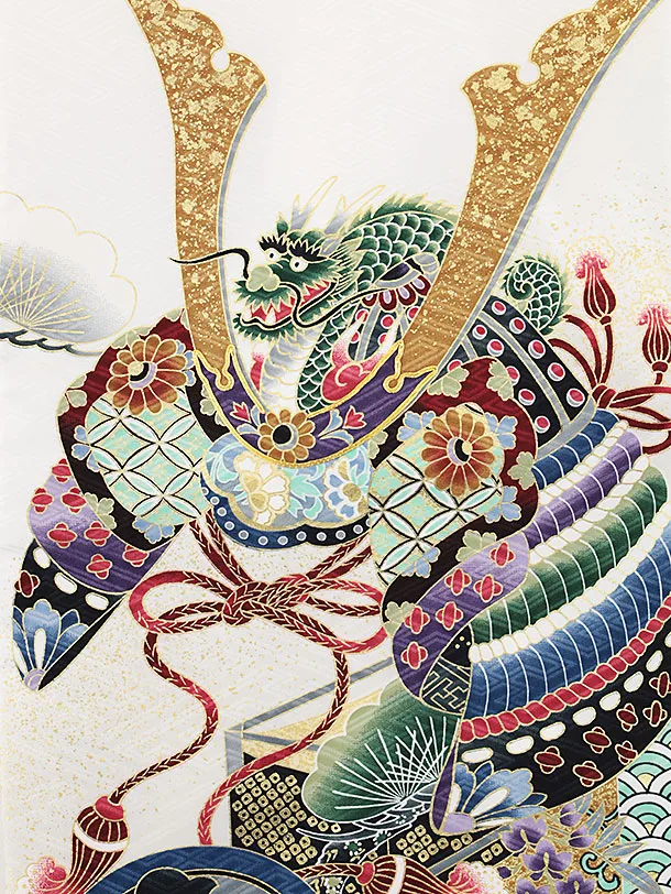 夏用 男児産着 お宮参り2084 単衣 白地 兜
