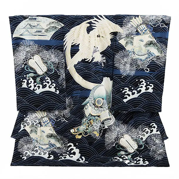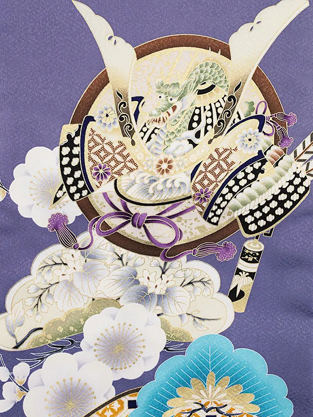 男児産着 お宮参りレンタル2150 ブルーグレー地 かぶとに松竹梅
