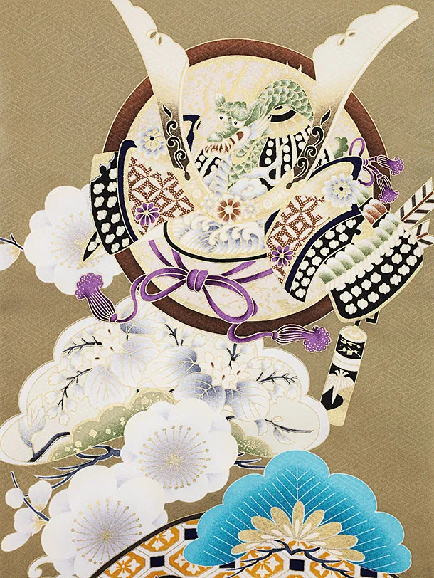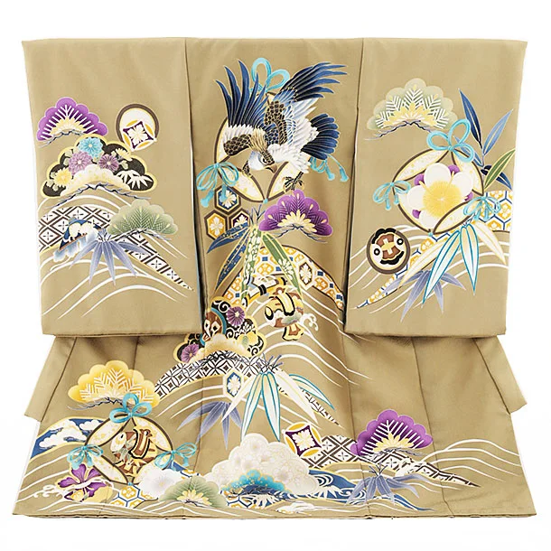 男児産着 お宮参りレンタル2151 利休茶色 かぶとに松竹梅