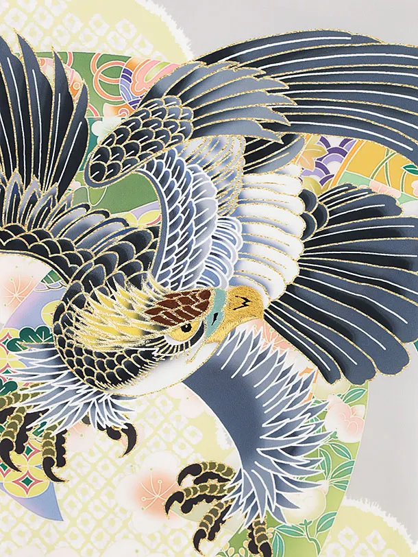 男児産着 お宮参りレンタル2157 うすグレー地 鷹に熨斗