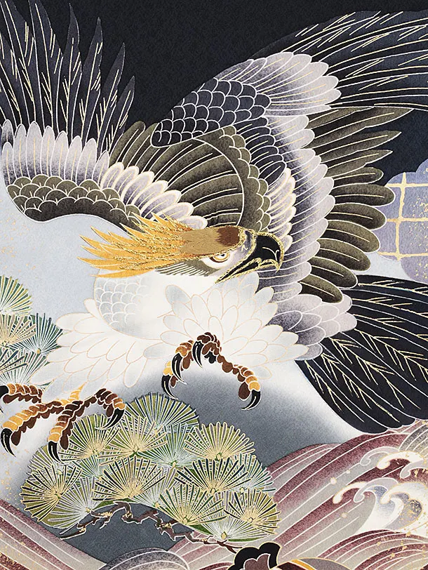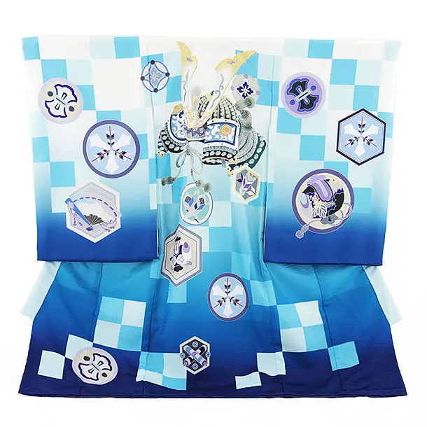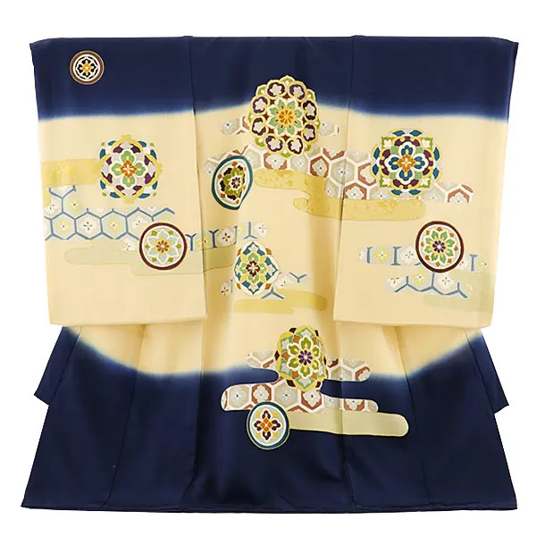 男児産着 お宮参りレンタル2163 正絹 紺地 鷹に波