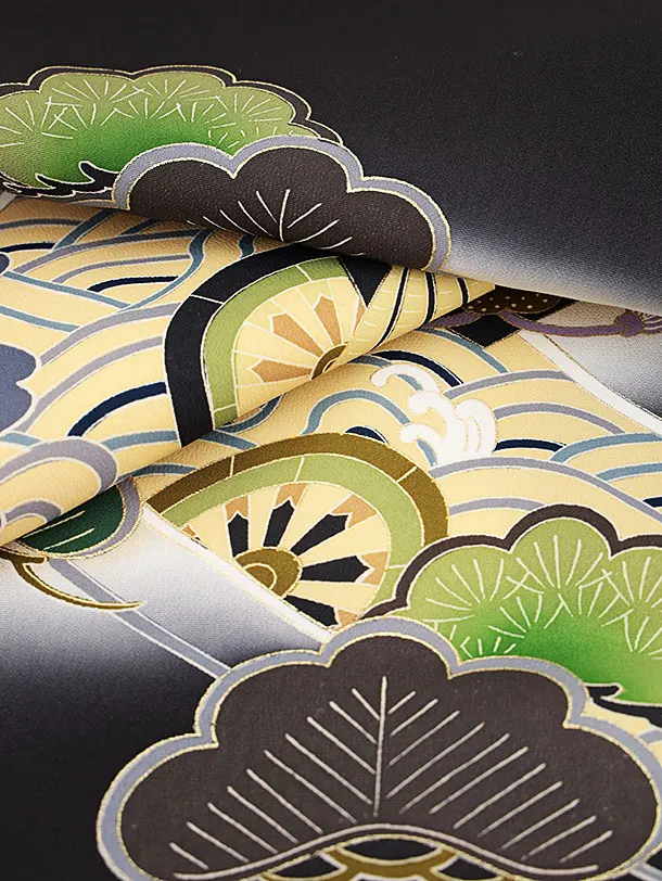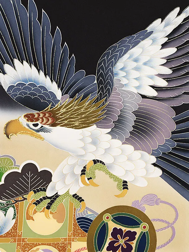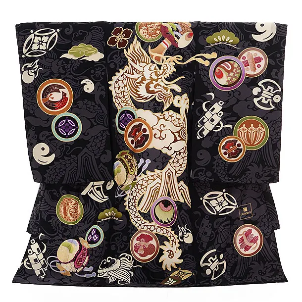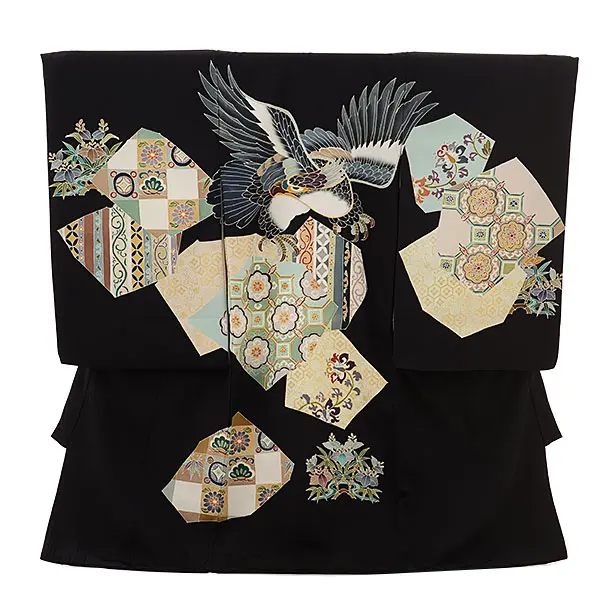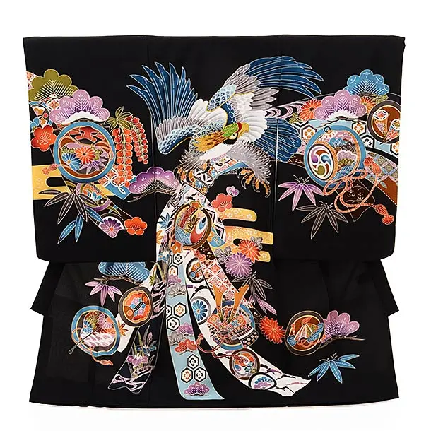 男児産着 お宮参りレンタル2168 正絹 黒地 鷹に吉祥文様