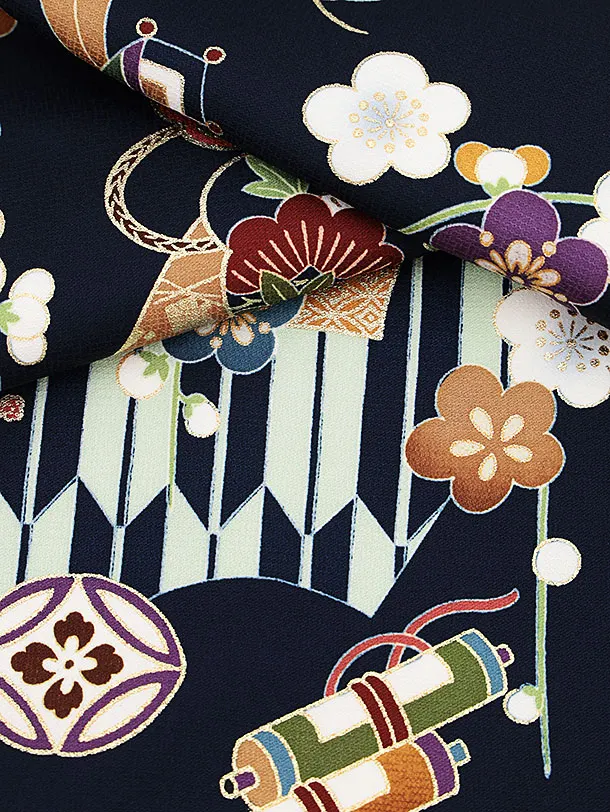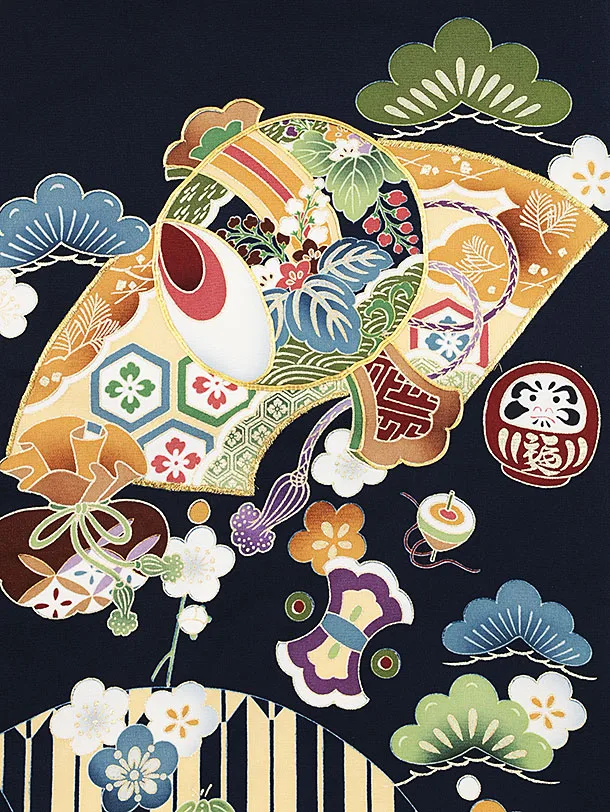 男児産着 お宮参りレンタル2173 正絹 紺地 小槌に扇
