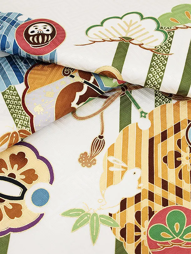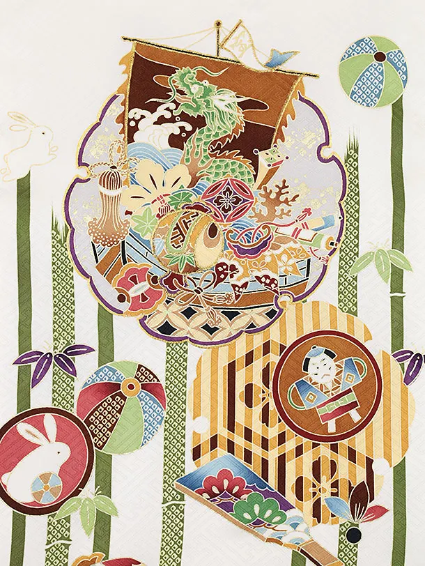 男児産着 お宮参りレンタル2186 正絹 白地 宝船に雪輪 うさぎ
