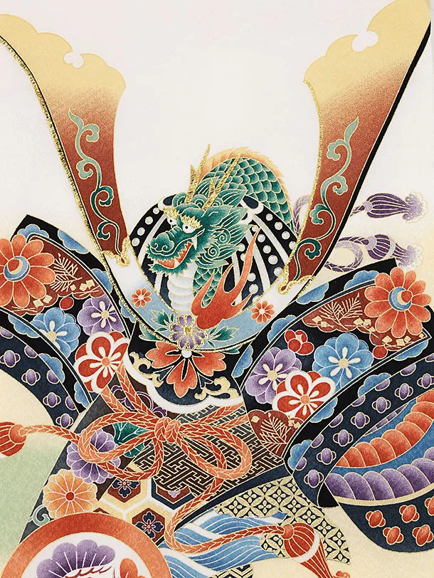 男児産着 お宮参りレンタル2188 正絹 白地裾紺 兜に束ね熨斗