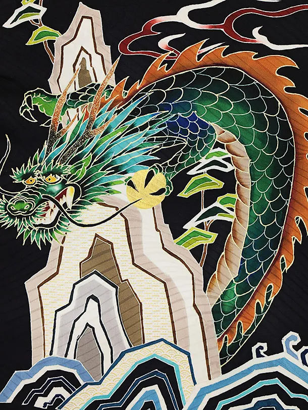 男児産着 お宮参りレンタル2227 京手描友禅 黒地 龍