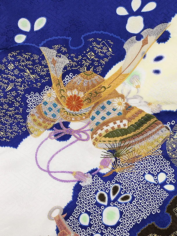 男児産着 お宮参りレンタル2231 ブルー地 刺繍兜に雲取り