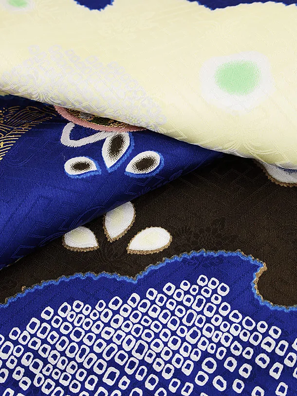 お祝い着をかける時は 絵柄がよく見える様に広げ抱いた子供の体を覆う様に掛け産着の付紐の一方を肩側から他方を脇から通して 抱き手の方の背で蝶結びにします。