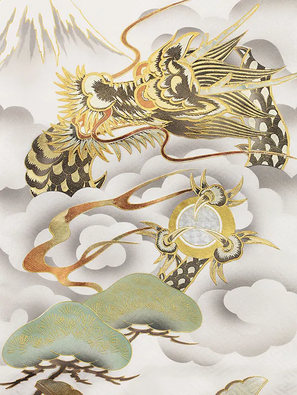 男児産着 お宮参りレンタル2289 白地 富士に昇り龍