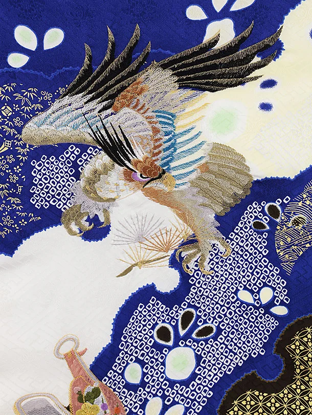 男児産着 お宮参りレンタル2302 ブルー地 刺繍鷹