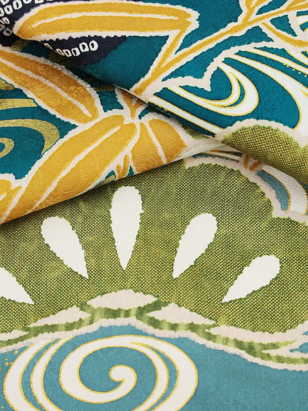 お祝い着をかける時は 絵柄がよく見える様に広げ抱いた子供の体を覆う様に掛け産着の付紐の一方を肩側から他方を脇から通して 抱き手の方の背で蝶結びにします。