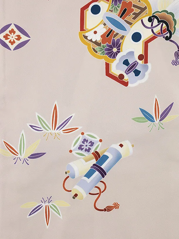 夏用 男児産着 お宮参り2327 単衣 グレージュ地 宝尽くし
