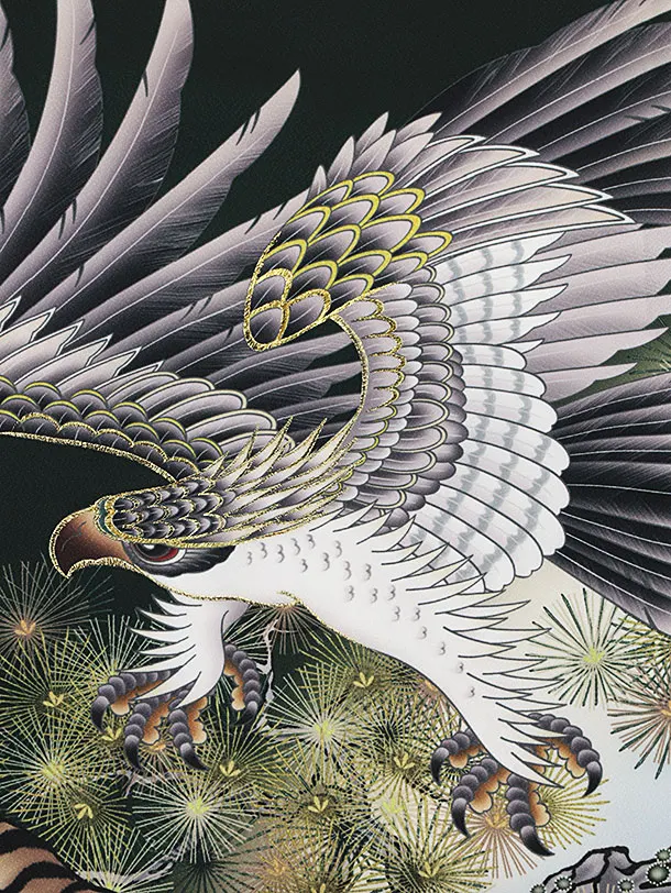 男児産着 お宮参りレンタル2349 濃緑 鷹に虎