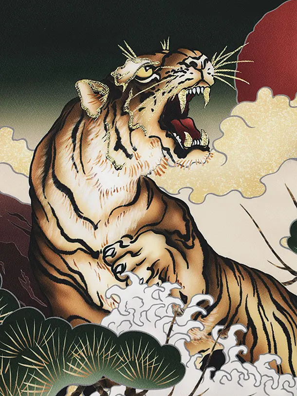 男児産着 お宮参りレンタル2350 濃緑 虎に波