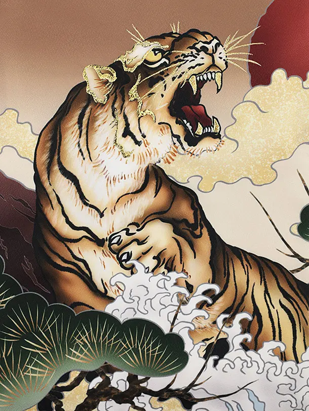 男児産着 お宮参りレンタル2351 茶 虎に波
