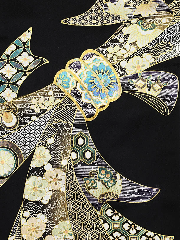 男児産着 お宮参りレンタル2404 正絹 黒地 束ね熨斗