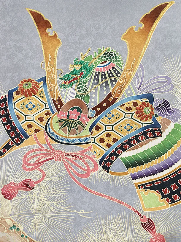 男児産着 お宮参りレンタル2409 グレー地 兜に松