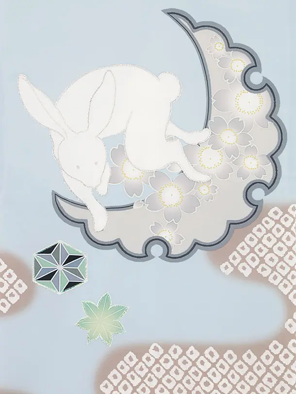 男児産着 お宮参りレンタル2413 水色地 月とうさぎ