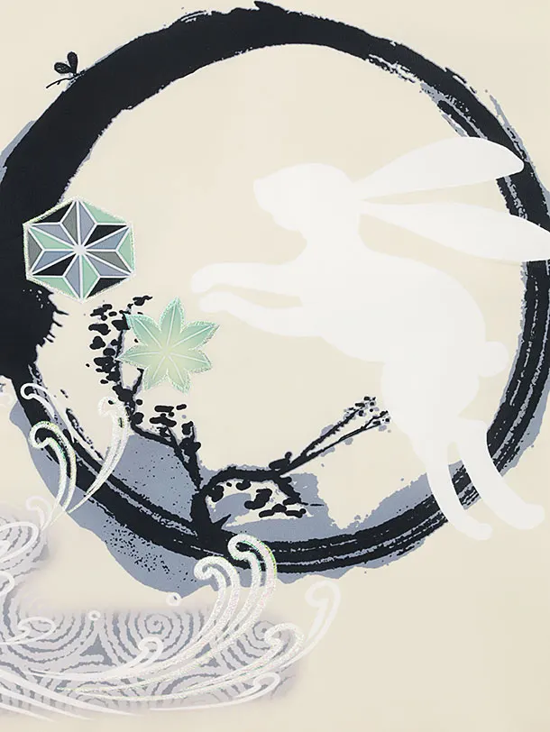 男児産着 お宮参りレンタル2414 クリーム地 月とうさぎ