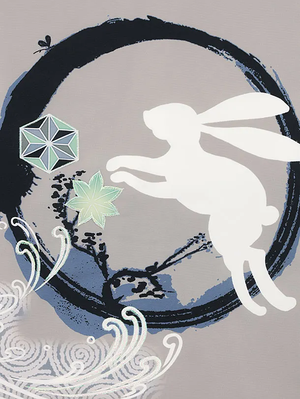 男児産着 お宮参りレンタル2415 グレー地 月とうさぎ