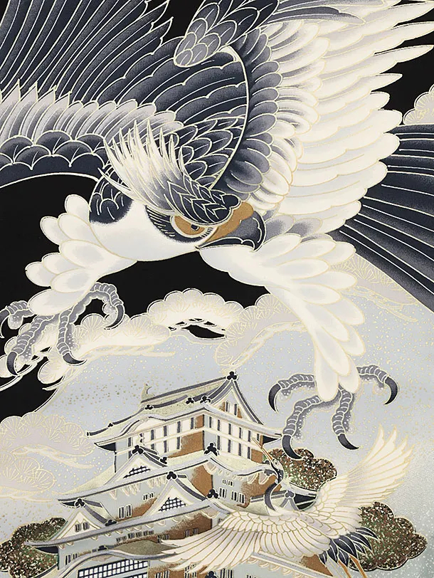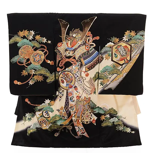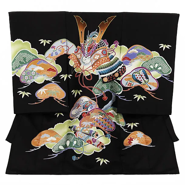 男児産着 お宮参りレンタル2419 黒地 鷹に城