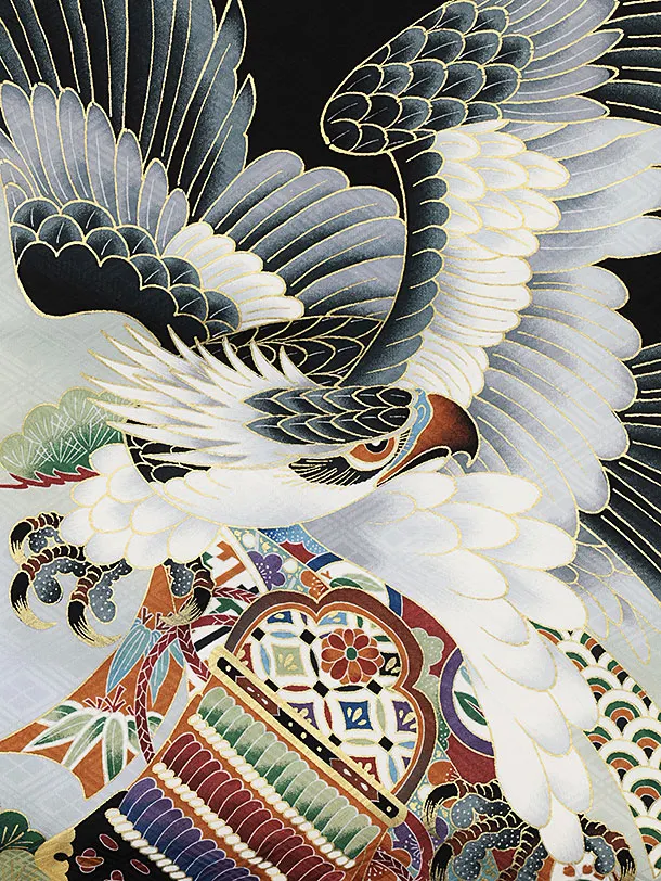 男児産着 お宮参りレンタル2422 黒地 熨斗に鷹
