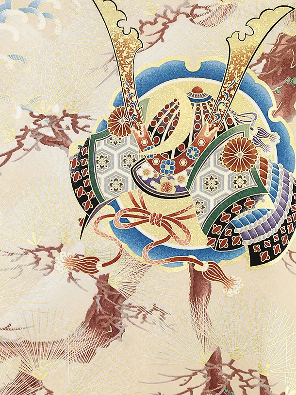 夏用 男児産着 お宮参り 2430 単衣 ベージュ地 鷹 兜