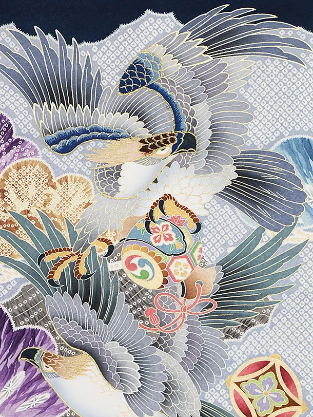 夏用 男児産着 お宮参り 2431 単衣 紺地 疋田模様 鷹 兜
