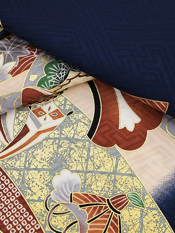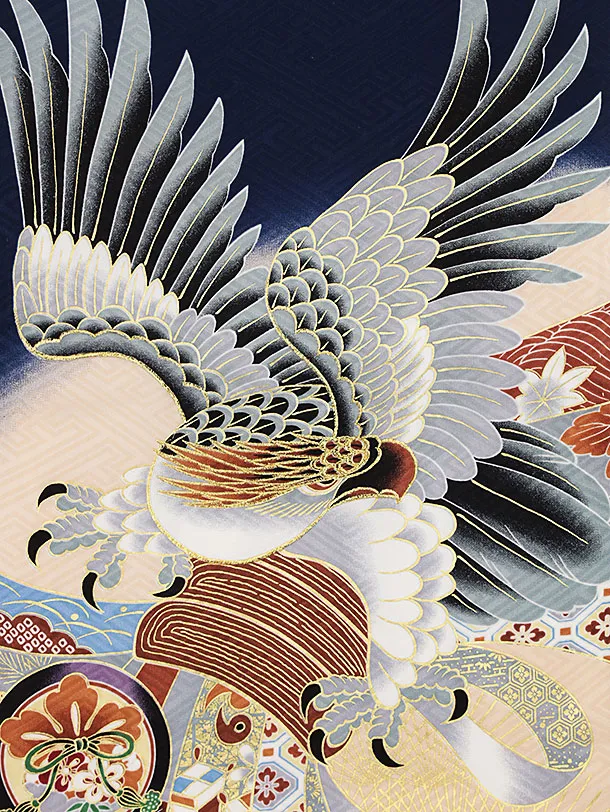 夏用 男児産着 お宮参り 2447 単衣 紺地 鷹に熨斗 吉祥文様