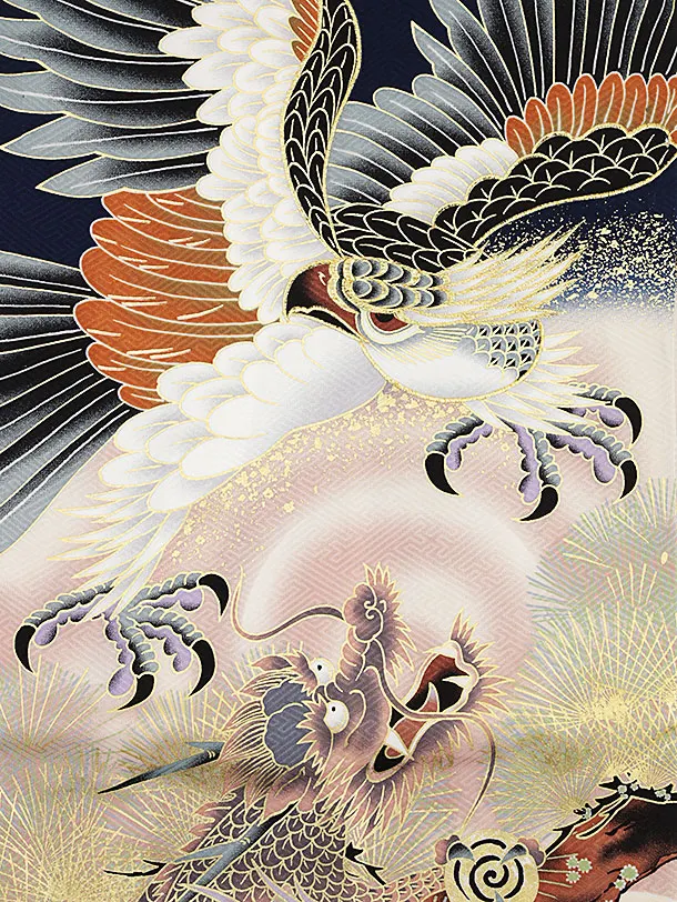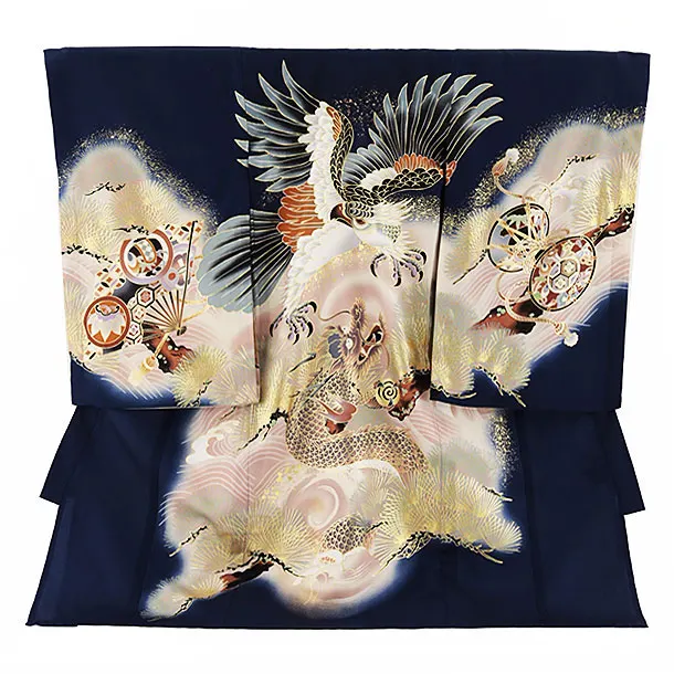 夏用 男児産着 お宮参り 2461 単衣 紺地 鷹に龍