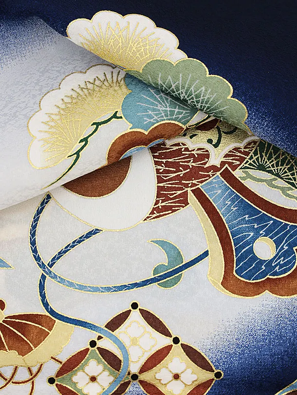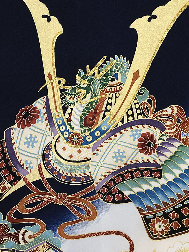 夏用 男児産着 お宮参り 2465 単衣 紺地 兜に扇 鼓