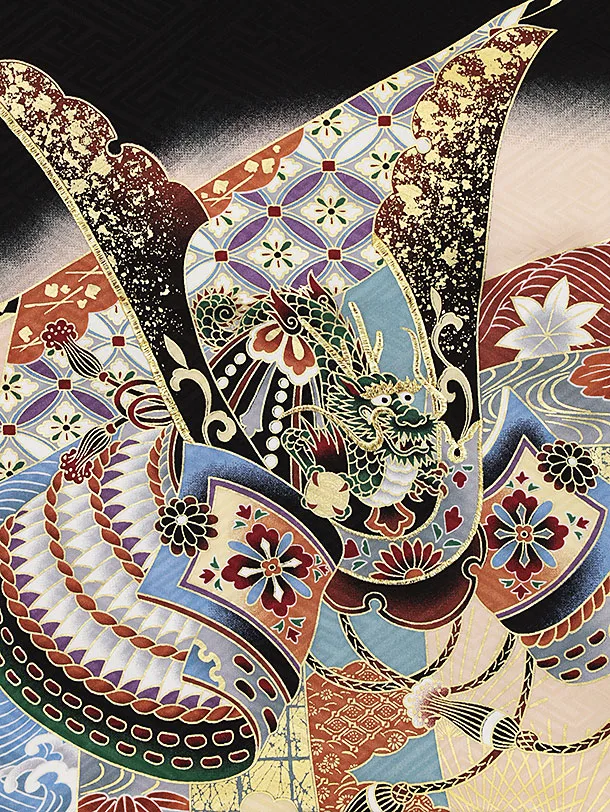 夏用 男児産着 お宮参り 2469 単衣 黒地 兜に熨斗
