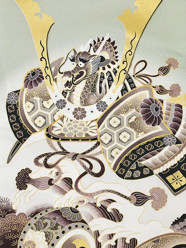 男児産着 お宮参りレンタル2484 白緑色 かぶとに波