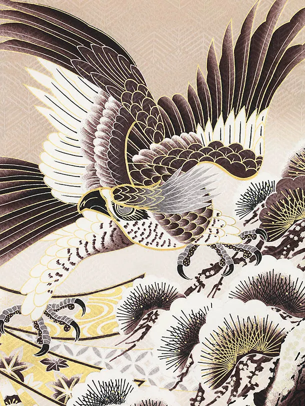 男児産着 お宮参りレンタル2487 モカブラウン 鷹に松 熨斗