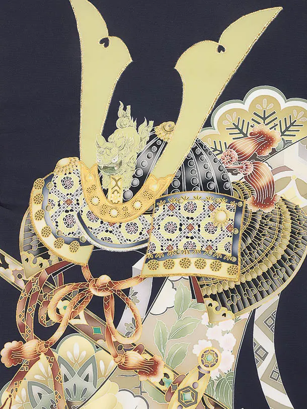 男児産着 お宮参りレンタル2489 濃藍色 兜に松