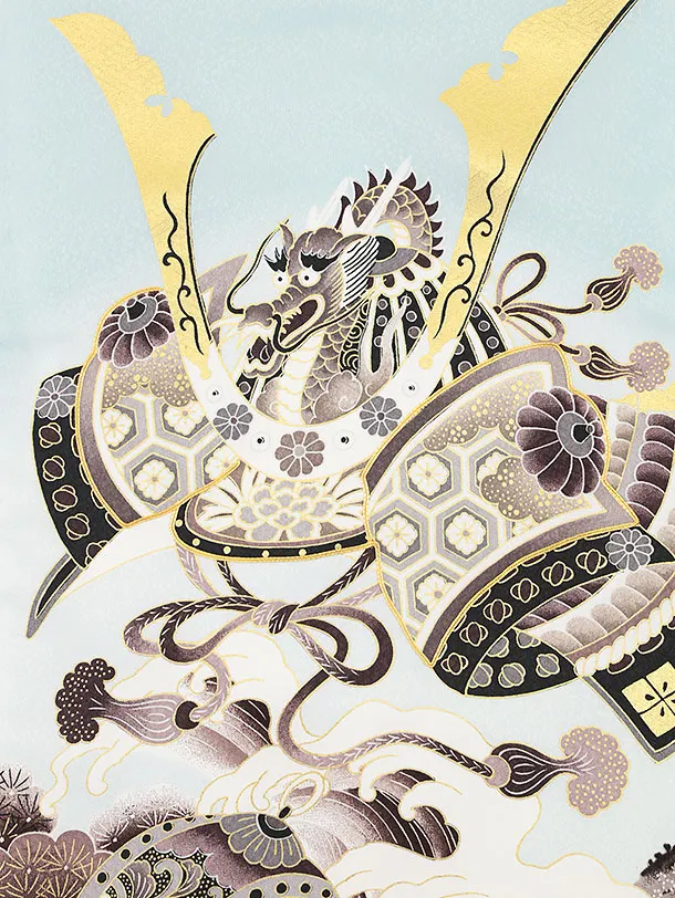男児産着 お宮参りレンタル2499 水色地 かぶとに波