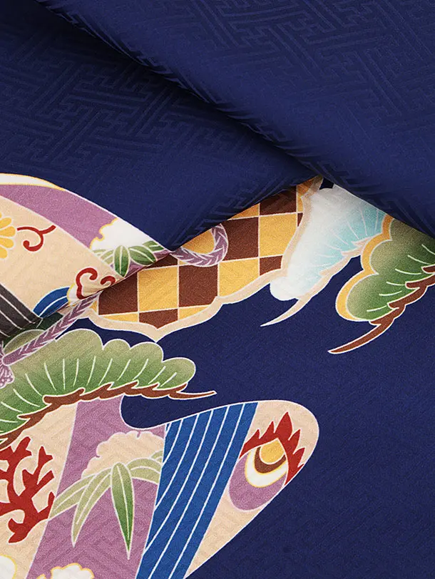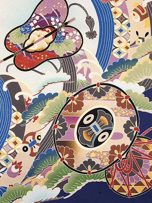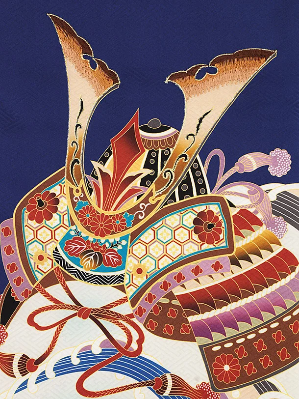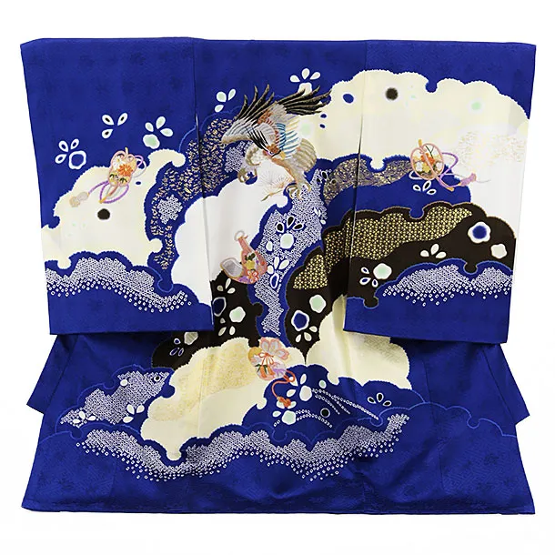 男児産着 お宮参りレンタル2505 正絹 紺地 兜に鼓
