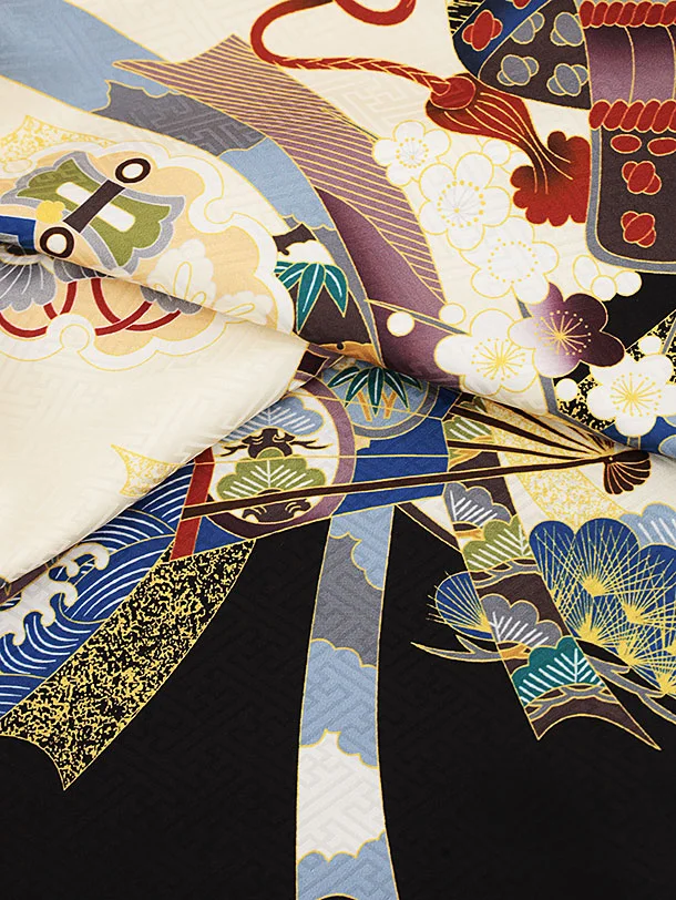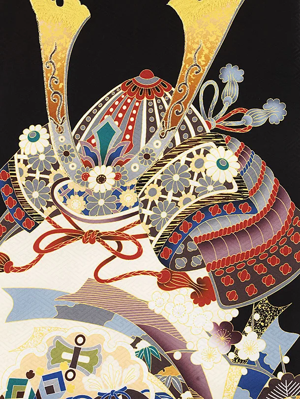 男児産着 お宮参りレンタル2508 正絹 黒地 兜に熨斗