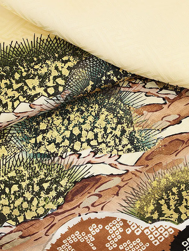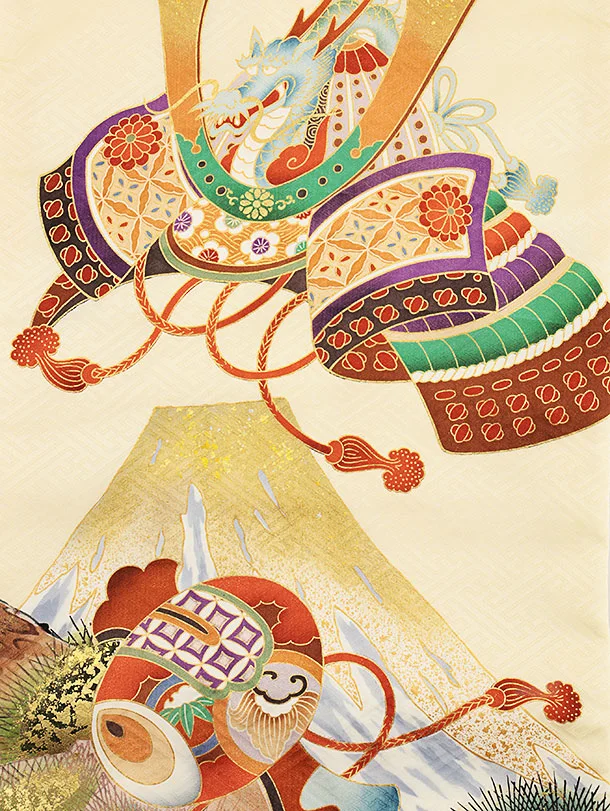 男児産着 お宮参りレンタル2517 【正絹】 クリーム地 兜に小槌 松