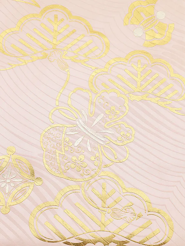 男児産着 お宮参りレンタル2555【正絹】薄ピンク 鷹に松 金彩