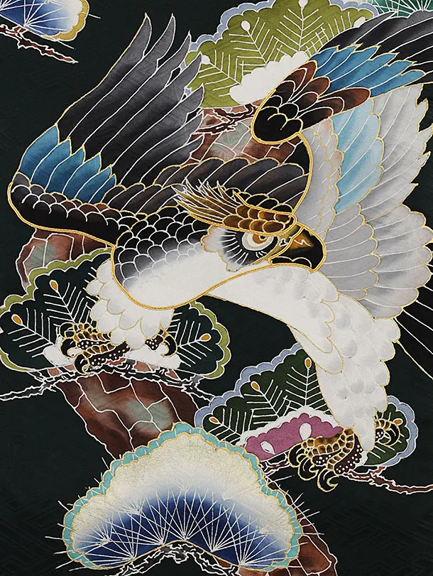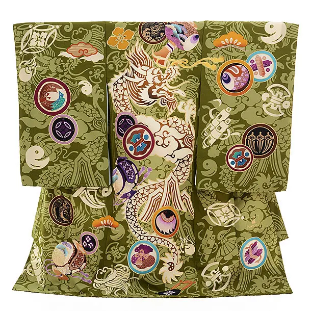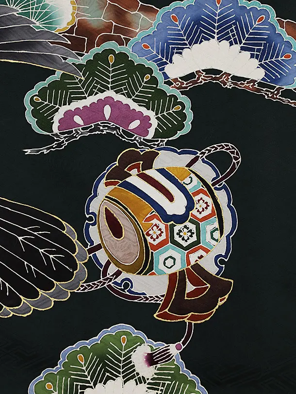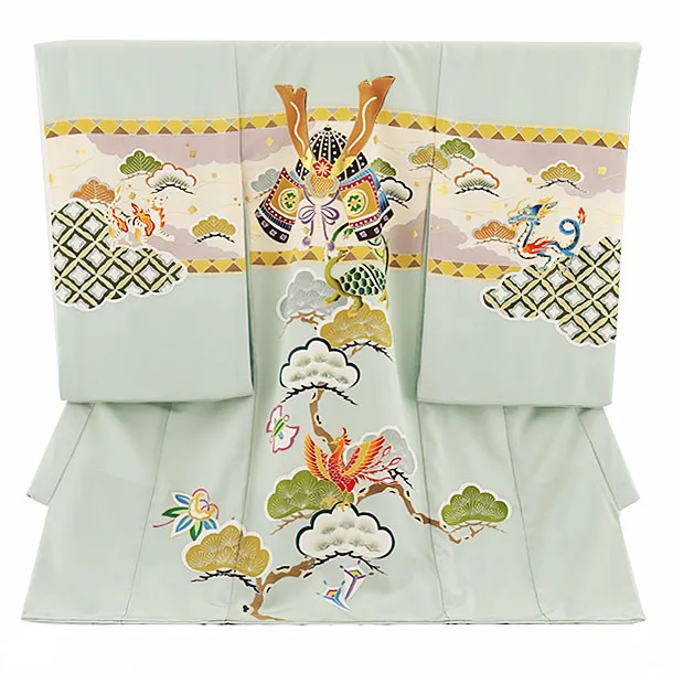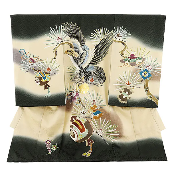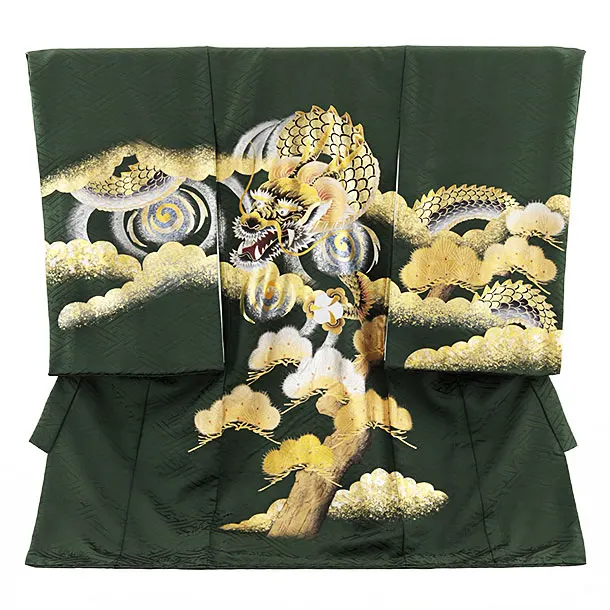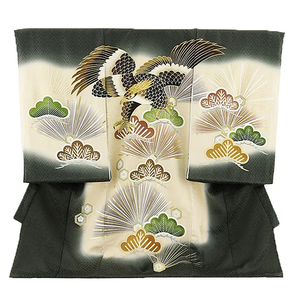 男児産着 お宮参りレンタル2558【正絹】深緑地 鷹に松