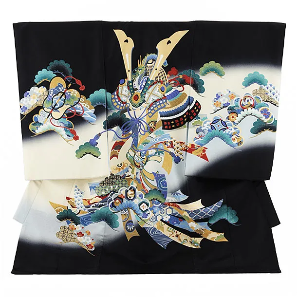 男児産着 お宮参りレンタル2563 黒地 束ね熨斗