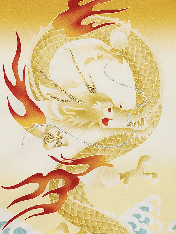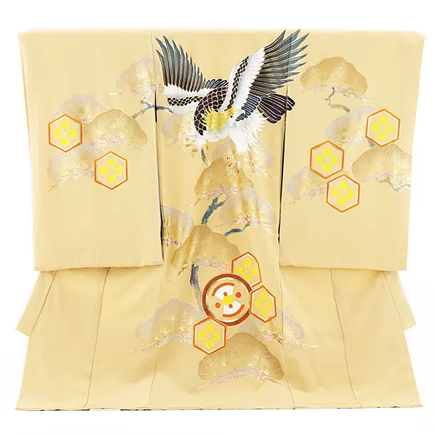 男児産着 お宮参りレンタル2566 黄土色 龍に波と丸紋
